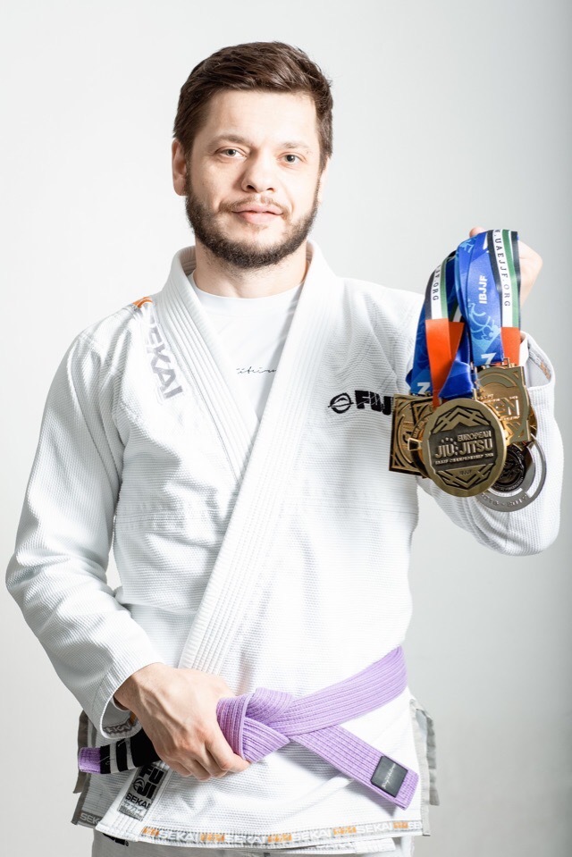 «Я бронзовый призер чемпионата Европы IBJJF-2018, (пурпуры, М2). Успешно выступаю в своей возрастной группе на открытых турнирах всех крупных федераций джиу-джитсу и получаю искреннее удовольствие от процесса».